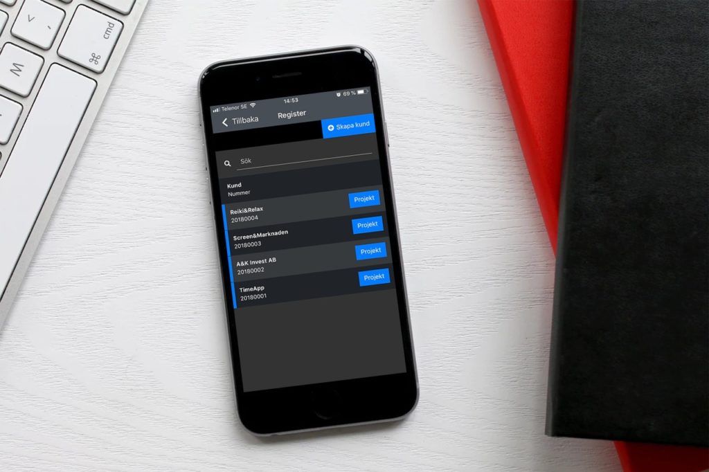 Sist men inte minst så bjuder vi på lite fler bilder av hur den kommande appen ser ut. På bilden nedan kan du se hur registret ser ut, samt vyn för att skapa en ny kund.