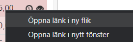 - Nu har vi lagt till möjligheten att öppna en faktura/kostnadsräkning/offert i en ny flik, genom att högerklicka på ikonen i högra hörnet av raden. Detta underlättar vid masshantering av fakturor.