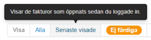 - Nu går det att filtrera på senast visade fakturor/kostnadsräkningar/offerter, under respektive sektion i menyn Fakturering.