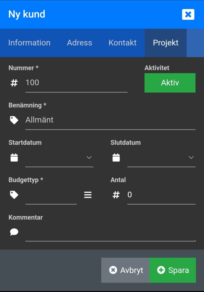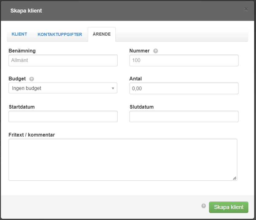 - Nu går det att själv välja vilket första projekt/ärende som skapas när ni registrerar en ny kund/klient (Detta gäller både i webbläsaren och i mobilappen).