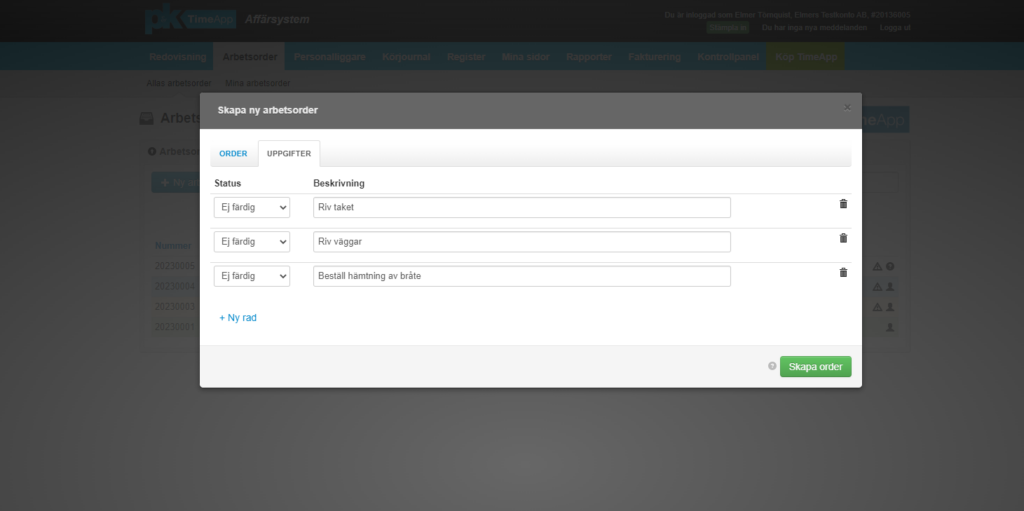 Kanske är det dags att använda ett smart verktyg för Arbetsorder, vilket vi har i TimeApp. Du som arbetsledare kan, på ett smidigt sätt, pussla ihop arbetsdagen. Genom att knyta ihop din arbetsorder med ett projekt, kan de anställda bocka av varje moment i en att-göra-lista. Det ger dig samtidigt möjligheten, att följa arbetet i realtid.