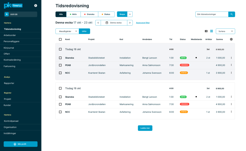 Vi vill helt enkelt att TimeApp ska ligga i framkant i branschen för tid- och projektredovisning. Därför samarbetar vi med den prisbelönta webb- och designstudion PS Kommunikation, för att skapa det mest optimala gränssnittet och designen för TimeApp. Så att ni, våra användare, har ett smidigt och praktiskt verktyg.