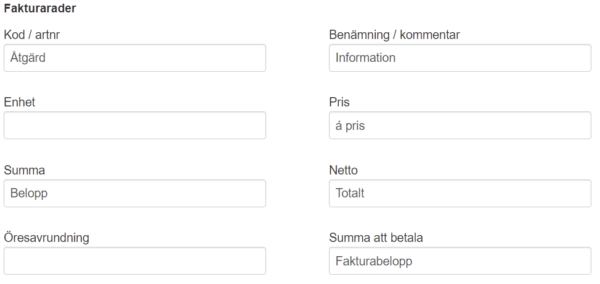 Den vanligaste grundmallen, som många av våra TimeApp-kunder använder, eftersom det finns stora möjligheter att styra vilka fält som ska finnas med på fakturan, men även döpa om beteckningen på fälten.