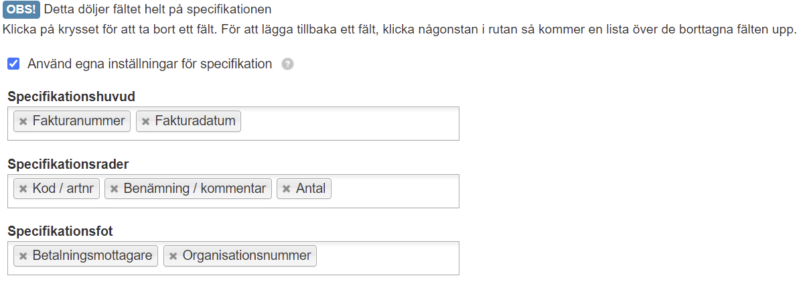 Det skapas alltid automatiskt en specifikation när ni gör en faktura, men ni väljer själva om ni vill skicka med den eller inte vid varje fakturatillfälle.