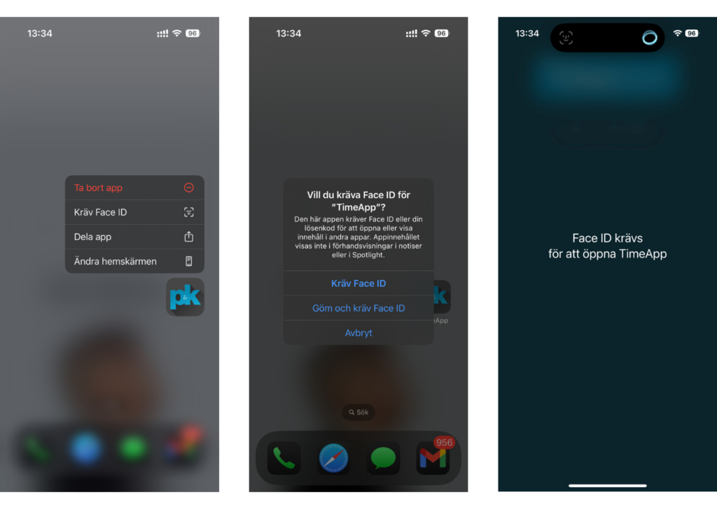 Genom att lägga till ett lås med FaceID på TimeApp minimerar du risken att någon obehörig kommer åt känslig information.